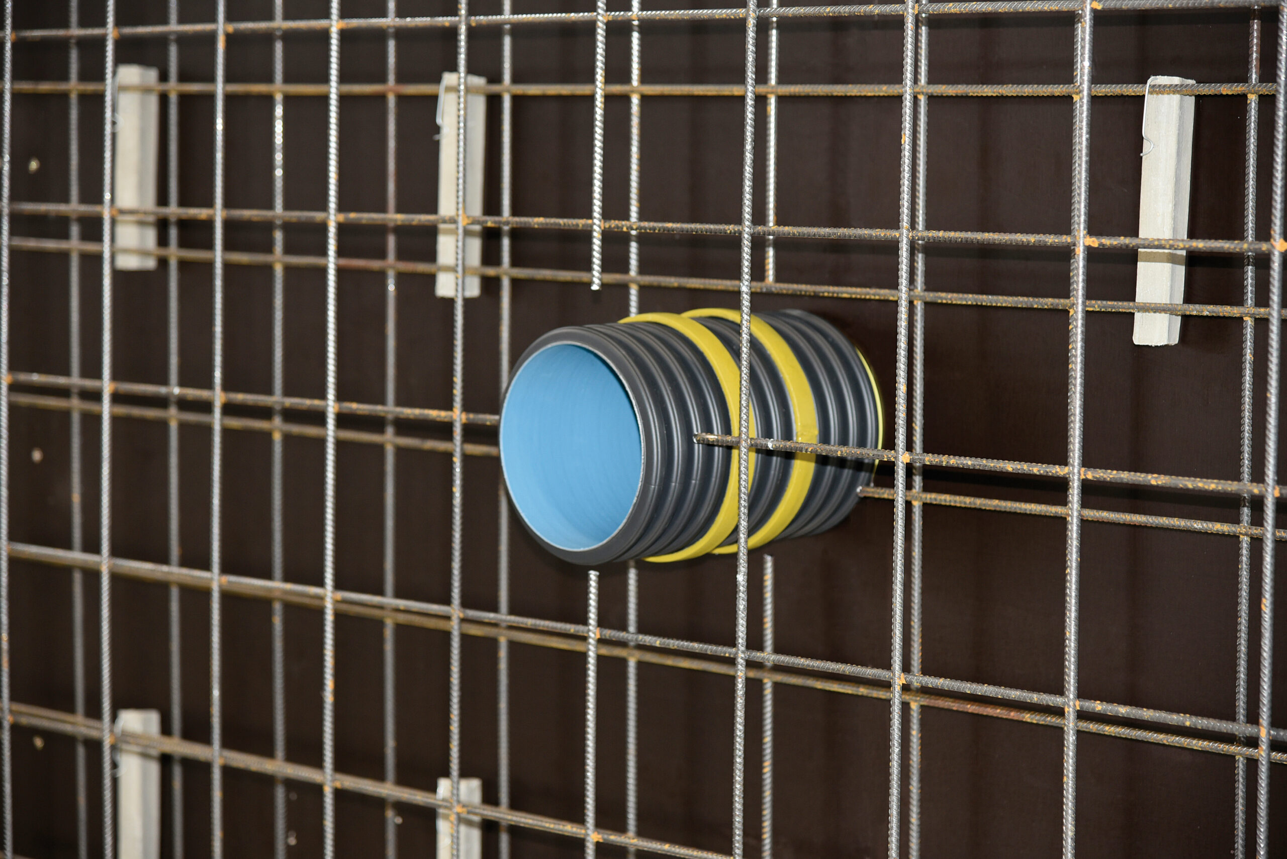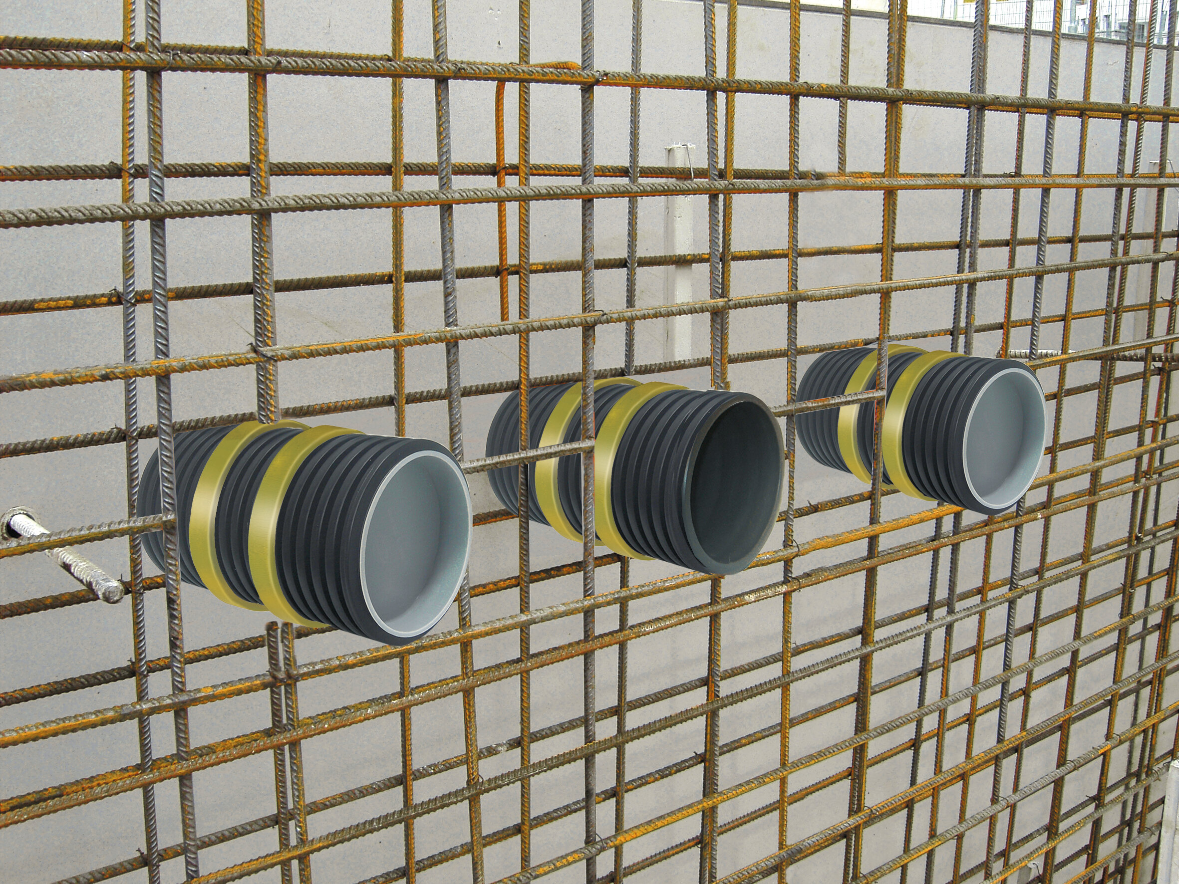 Suprafața exterioară ondulată se agață de beton, în timp ce două benzi de etanșare aplicate în jurul centrului împiedică suplimentar pătrunderea apei în structură.